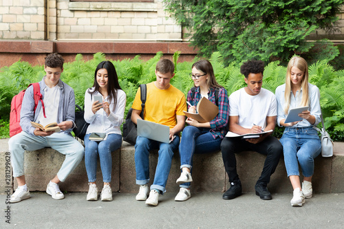 © Prostock-studio, Obraz premium College students studying in university campus with books