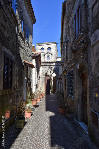 Fototapeta premium Collepardo, Italy, 02/22/2020. An alley between the old stone houses of a...