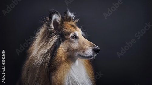 © Dekastro, Fototapeta premium collie dog portrait wallpaper with good expression and blurred neutral background