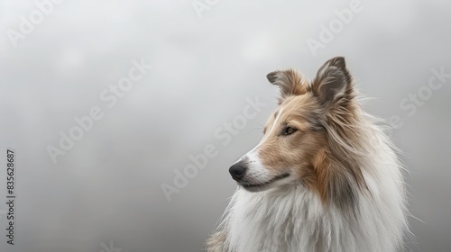 © Dekastro, Fototapeta premium collie dog portrait wallpaper with good expression and blurred neutral background