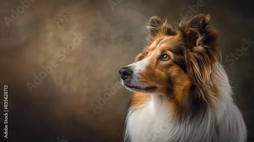 © Dekastro, Fototapeta premium collie dog portrait wallpaper with good expression and blurred neutral background
