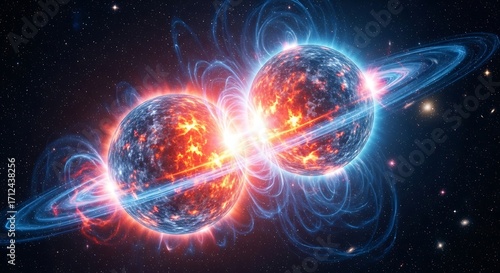 © Kristhai, Obraz premium Collision of Two Neutron Stars Creating Powerful Energy Burst in Deep Space