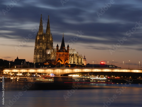 © Markus, Obraz premium Cologne cathedral with bridge Severinsbruecke at night
