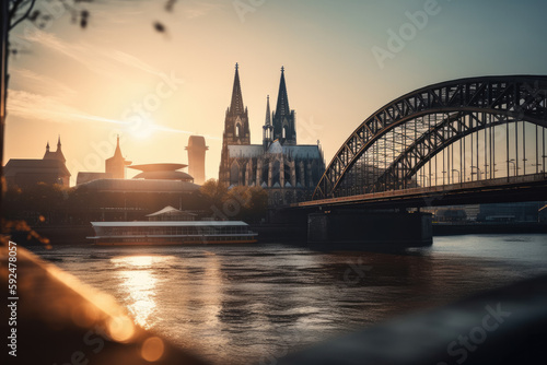© Novanture, Fototapeta premium cologne city with church created with Generative AI technology