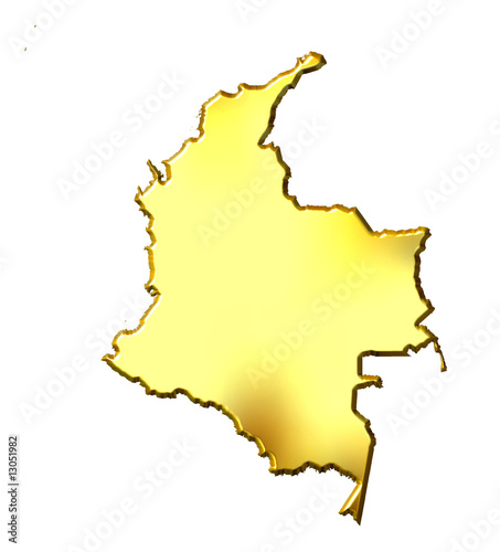 © Georgios Kollidas, Obraz premium Colombia 3d Golden Map