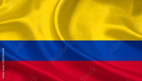 © Adoby, Fototapeta premium Colombia flag with yellow, blue, and red horizontal stripes, fabric texture and folds.