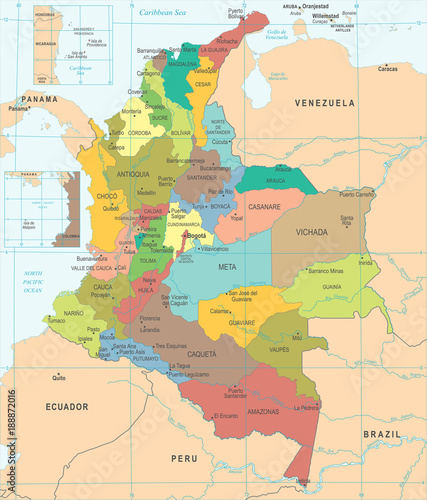 © Porcupen, Obraz premium Colombia Map - Detailed Vector Illustration