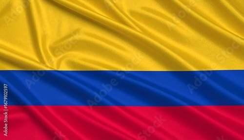 © Irfan, Fototapeta premium Colombian flag with bold yellow, blue, and red horizontal stripes symbolizing wealth, sea, and sacrifice.