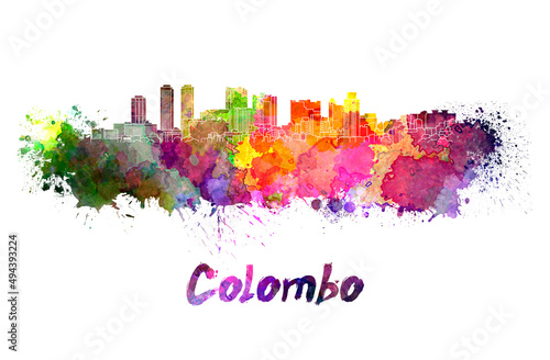 © Paulrommer, Fototapeta premium Colombo skyline in watercolor