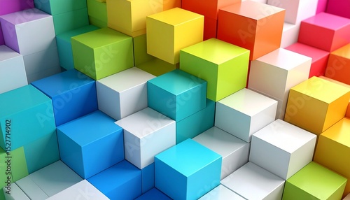 Obraz premium Color-blocked paper stacks arranged in a cascading stair layout, each block...