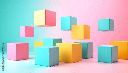 Obraz premium Color Burst Matrix – Floating Cubes in Gradient Space