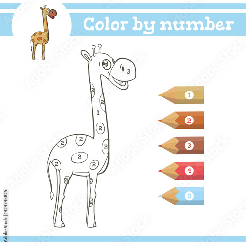 © fafarumba, Naklejka premium Color by numbers. Coloring page for preschool children. Learn numbers for kindergartens. Educational game. Vector illustration