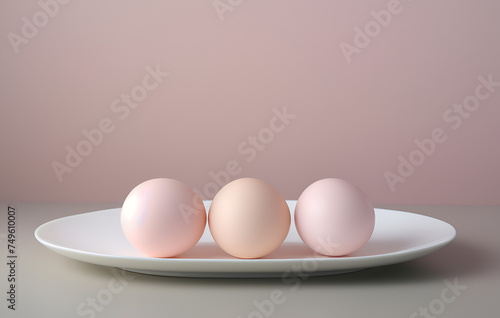 © Lova Production, Fototapeta premium Color eggs on a plate on the background
