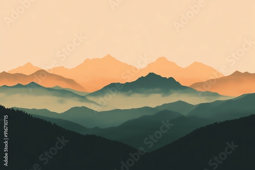 © Elena, Obraz premium color gradient of brown to green vibrant background with minimalistic style mountains, art minimal landskape, wallpaper, banner, copy space