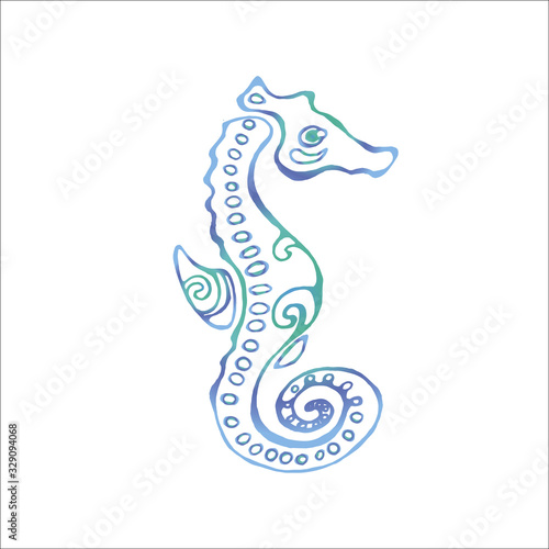 Fototapeta premium Color illustration of a sea animal. Sea Horse.