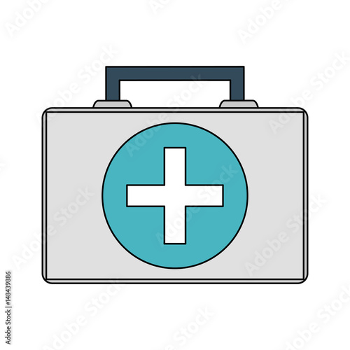 Obraz premium color image cartoon first aid kit with symbol cross vector illustration