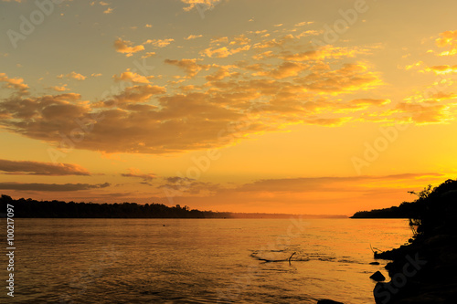 © photonewman, Fototapeta premium Color of the sky that morning Mekong River Ubon Ratchathani, Tha