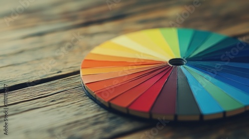 Obraz premium Color palette on rustic wooden table highlighting vibrant hues for design inspiration and creative projects
