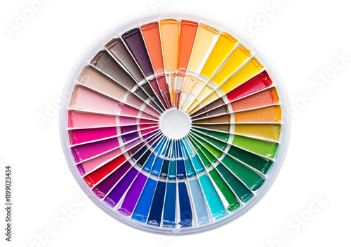 Obraz premium Color palette with paint in a plastic tray, isolated on a white background