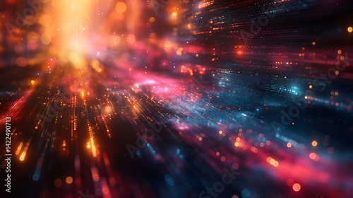© shahar, Fototapeta premium Color Particle Field Glowing Energy Rays, Futuristic Tech Background Design.