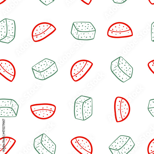 Obraz premium Color sweet cake and marmalade pattern in doodle technique for design. Vector...