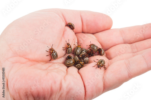 © Dmitriy Sechin, Obraz premium Colorado beetles on palms