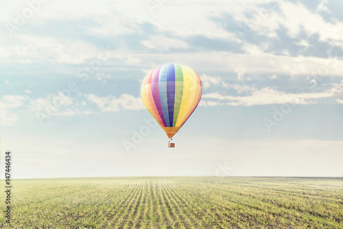 Fototapeta premium colorated balloon flying over a rural landscape