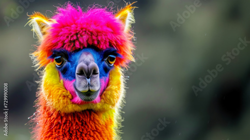 Fototapeta premium Colored alpaca. Painted animals with colored in their hair and black...