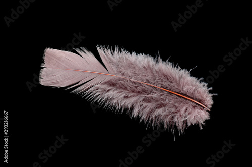 © spline_x, Obraz premium Colored bird feather isolated on black background