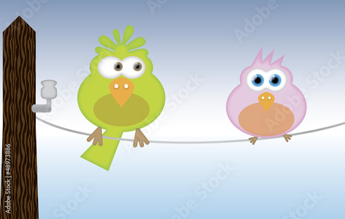 Fototapeta premium colored birds on electric wire