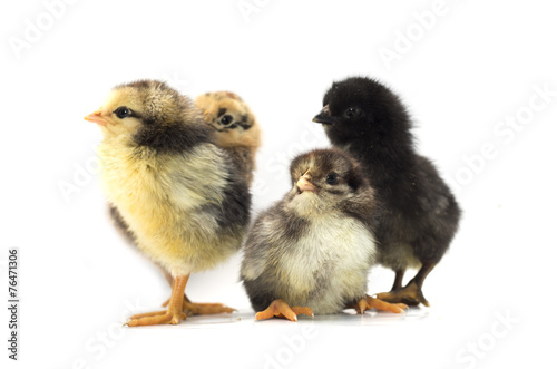 © aljna, Fototapeta premium Colored chickens on a white background. Photo.
