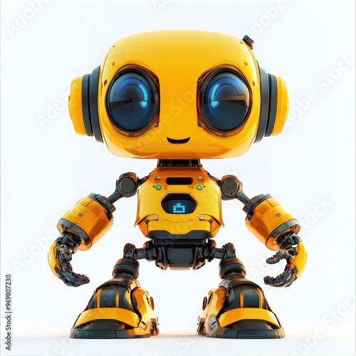 © Антон Федченко, Fototapeta premium Colored cute and funny 3d robot modern style isolated on white background. Cartoon style character.