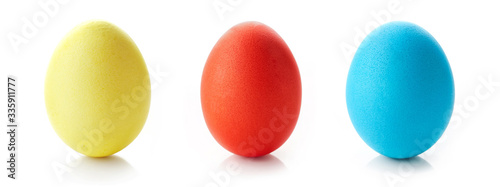 © bigacis, Obraz premium Colored easter eggs isolated on white background