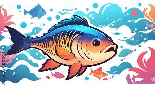 © Tark, Naklejka premium Colored fish themed logo icon symbol emblem, Generative AI