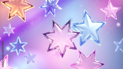 Fototapeta premium Colored glass stars geometry 3D. 3D illustration. Generative AI