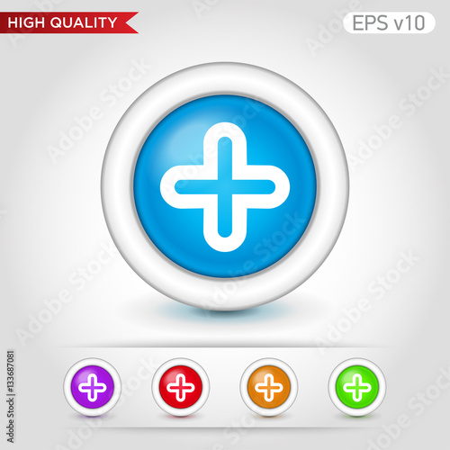 © samoilenkomv, Obraz premium Colored icon or button of plus symbol with background