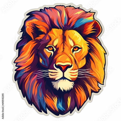 Obraz premium Colored Lion Head Sticker. Black Borderline, Vector