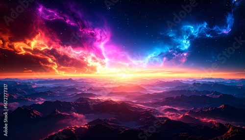 © HOT PLACE, Fototapeta premium Colored Nebulae Flowing Over Horizon