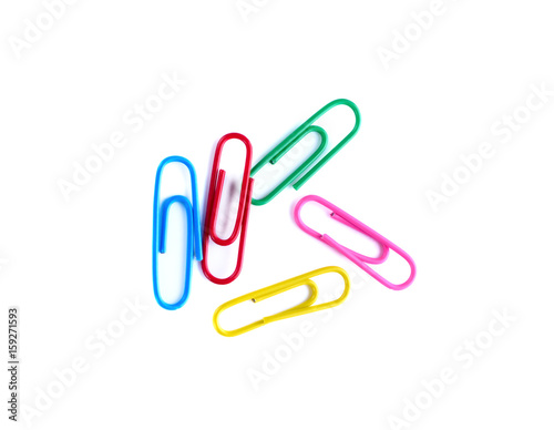 © phongphiphat, Obraz premium Colored paper clips isolated on a white background