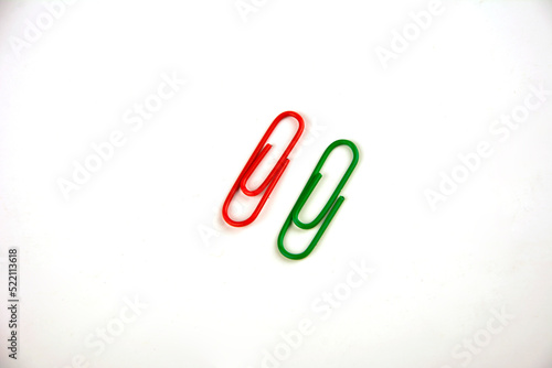 © wiha3, Obraz premium Colored paper clips on a white background.