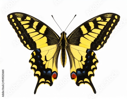© Studio-M, Fototapeta premium Colored Papilio Machaon butterfly close view over white background