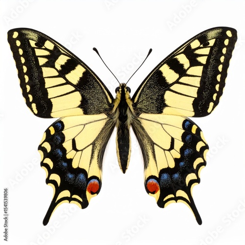 © Studio-M, Fototapeta premium Colored Papilio Machaon butterfly close view over white background