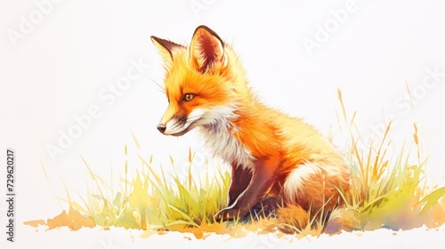© Matthew, Obraz premium colored pencil sketch of a cute fox, forest animal, isolated on a white background