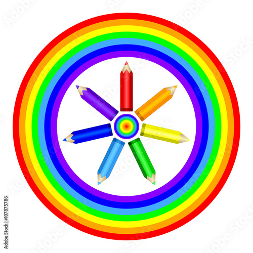 Obraz premium Colored pencils and rainbow. Vector EPS10