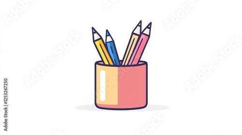 © lestari, Fototapeta premium Colored pencils in a pink pencil holder