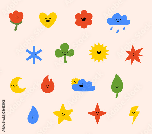 Fototapeta premium colored set of vector sticker simple decorative elements. Various icons...