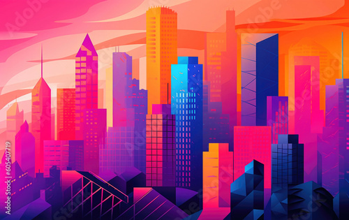 © Andrii , Obraz premium Colored skyscrapers with unique, eye-catching designs that make the cityscape. Generative AI