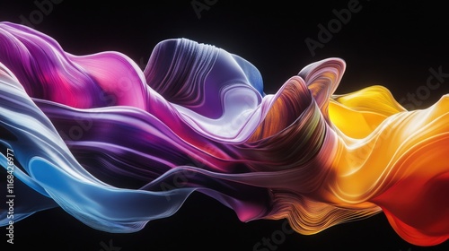 © MK, Obraz premium Colored Waves on Black Background