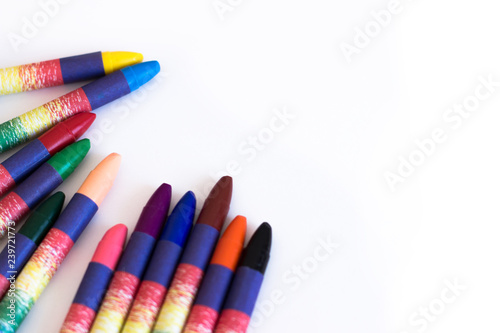 © Denis, Fototapeta premium Colored wax pencils on a white background close-up