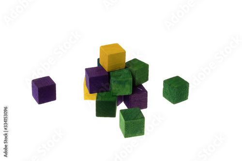 © Ивелин Митев, Obraz premium Colored wooden cubes in a pile for playing, building. Isolated on white background.